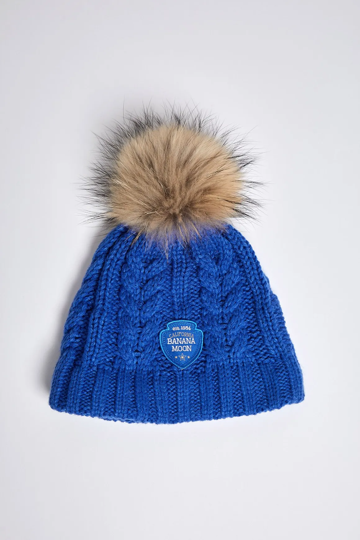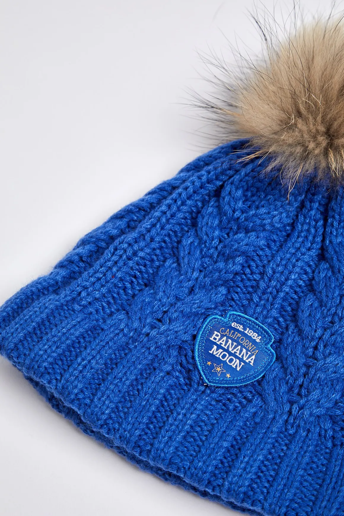 | Détails | • Bonnet femme bleu gitane • Torsades et côtes • Doublé polaire • Pompon amovible en véritable fourrure • Écusson • Taille unique |