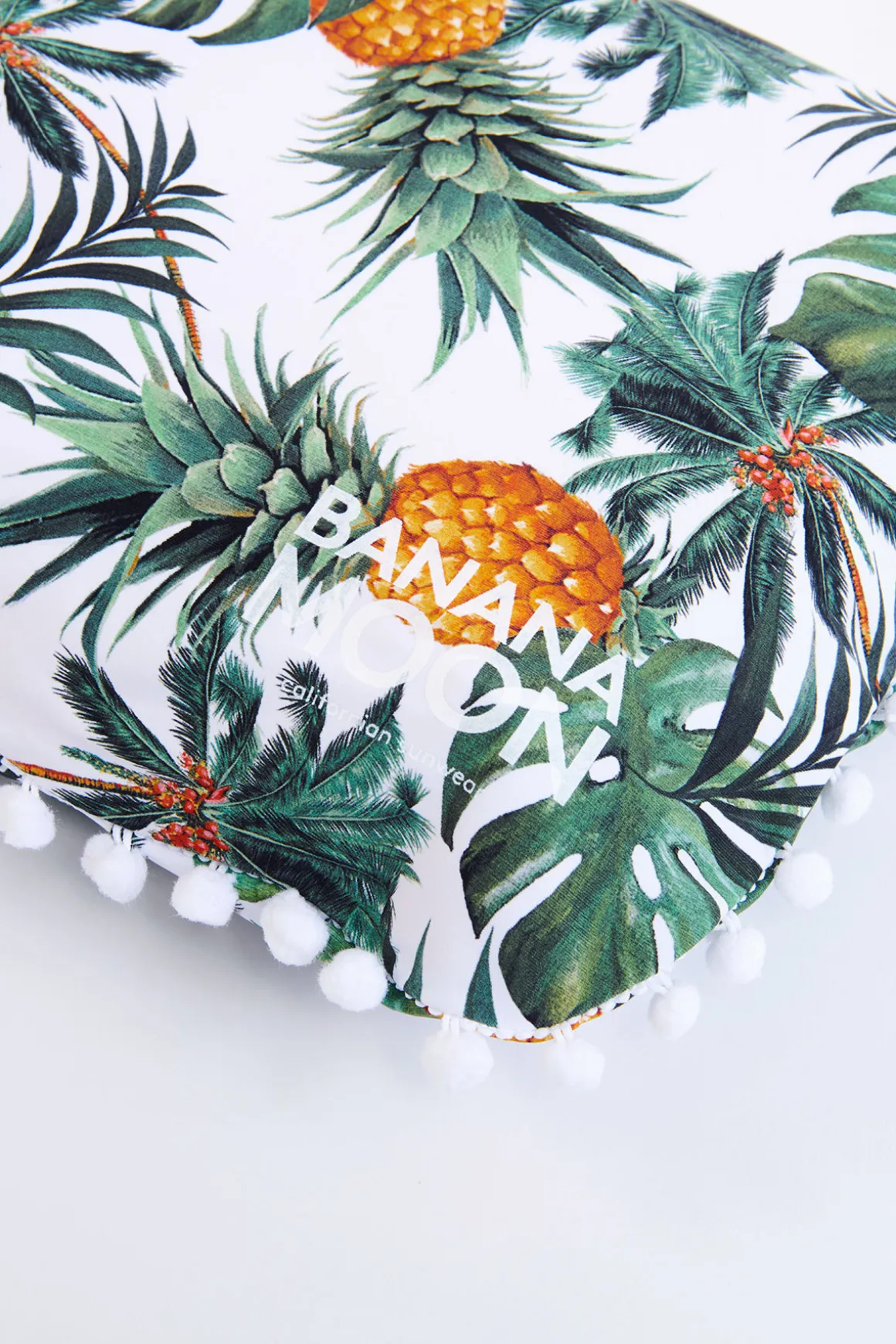 | Description | Coussin de plage, blanc avec imprimé tropical, DJERBA PILLOWTOO, de la collection été Banana Moon. |