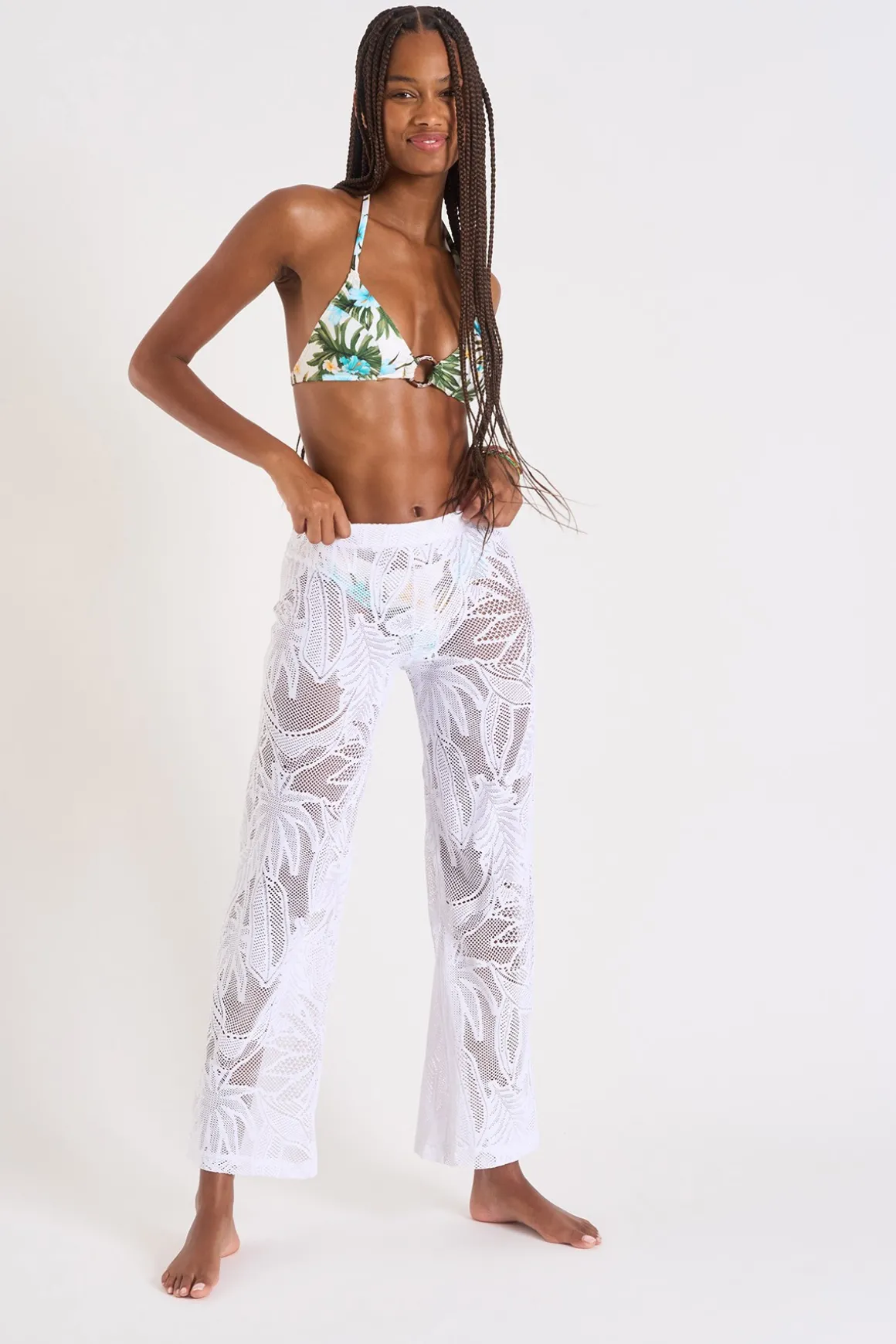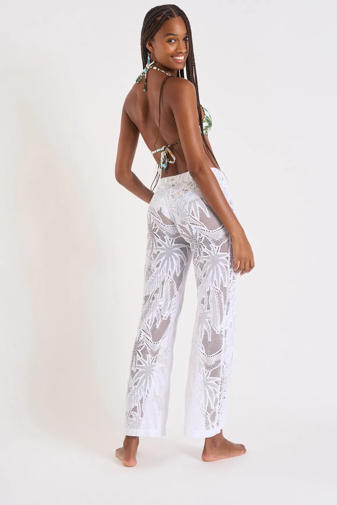 | Détails | • Pantalon fluide femme • Coloris blanc • Matière ajourée esprit crochet • Taille élastiquée |