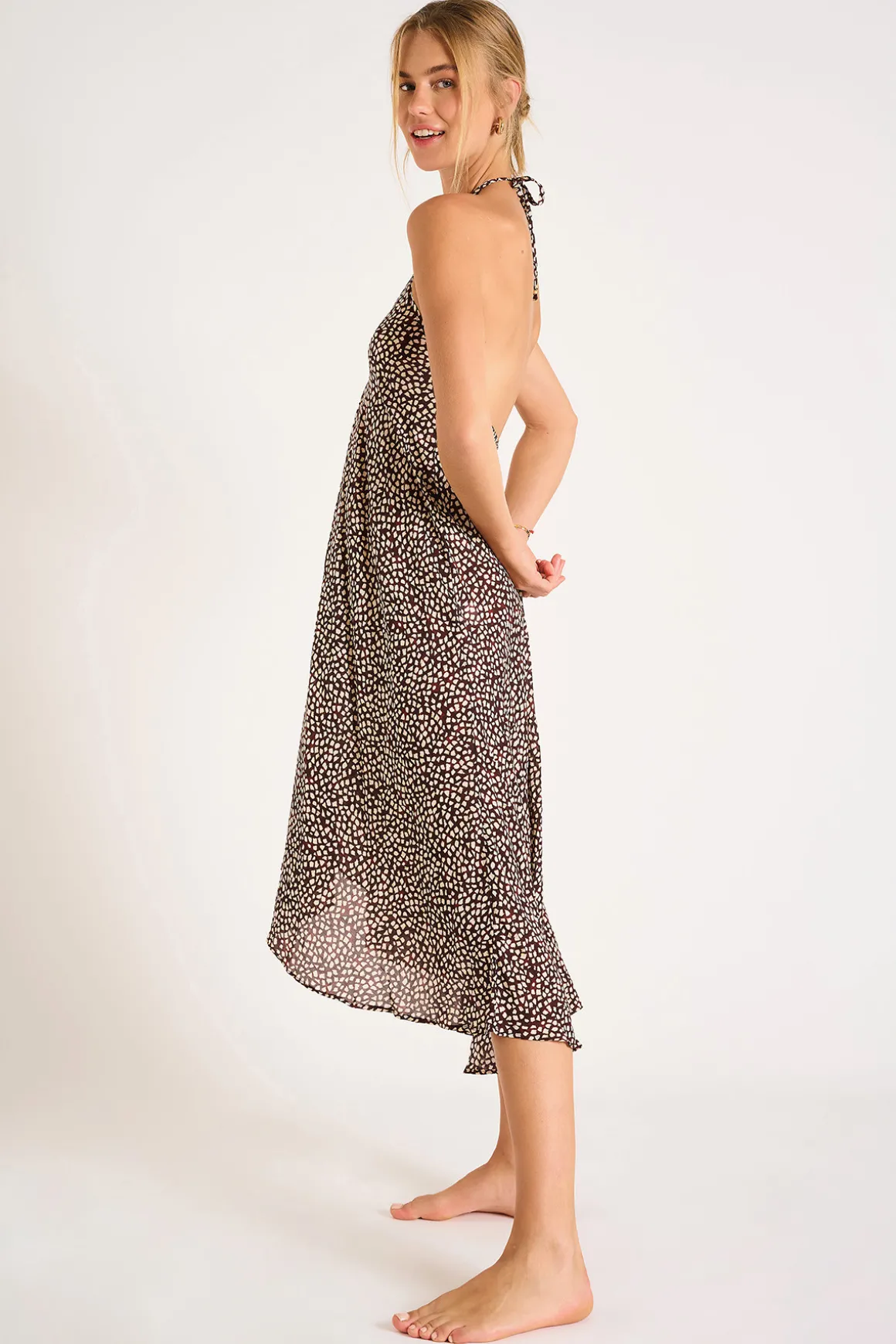 | Détails | • Robe longue • Dos nu • Coloris uni • Imprimé animalier • En voile de viscose • Se noue dans le dos |
