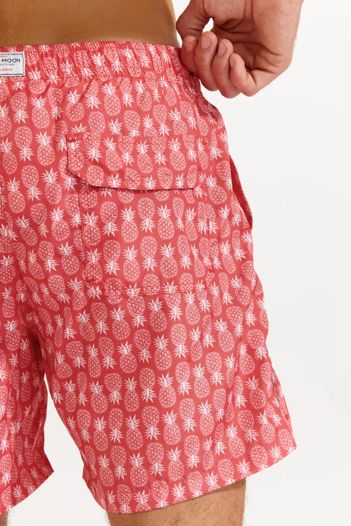 | Description | Short de bain rouge imprimé ananas MANLY OCOONORde la collection été Banana Moon. Profitez des rayons de soleil et des baignades avec style grâce à notre maillot de bain de la collection OCOONOR. Il vous offre un maximum de confort et vous accompagne tout l’été. |