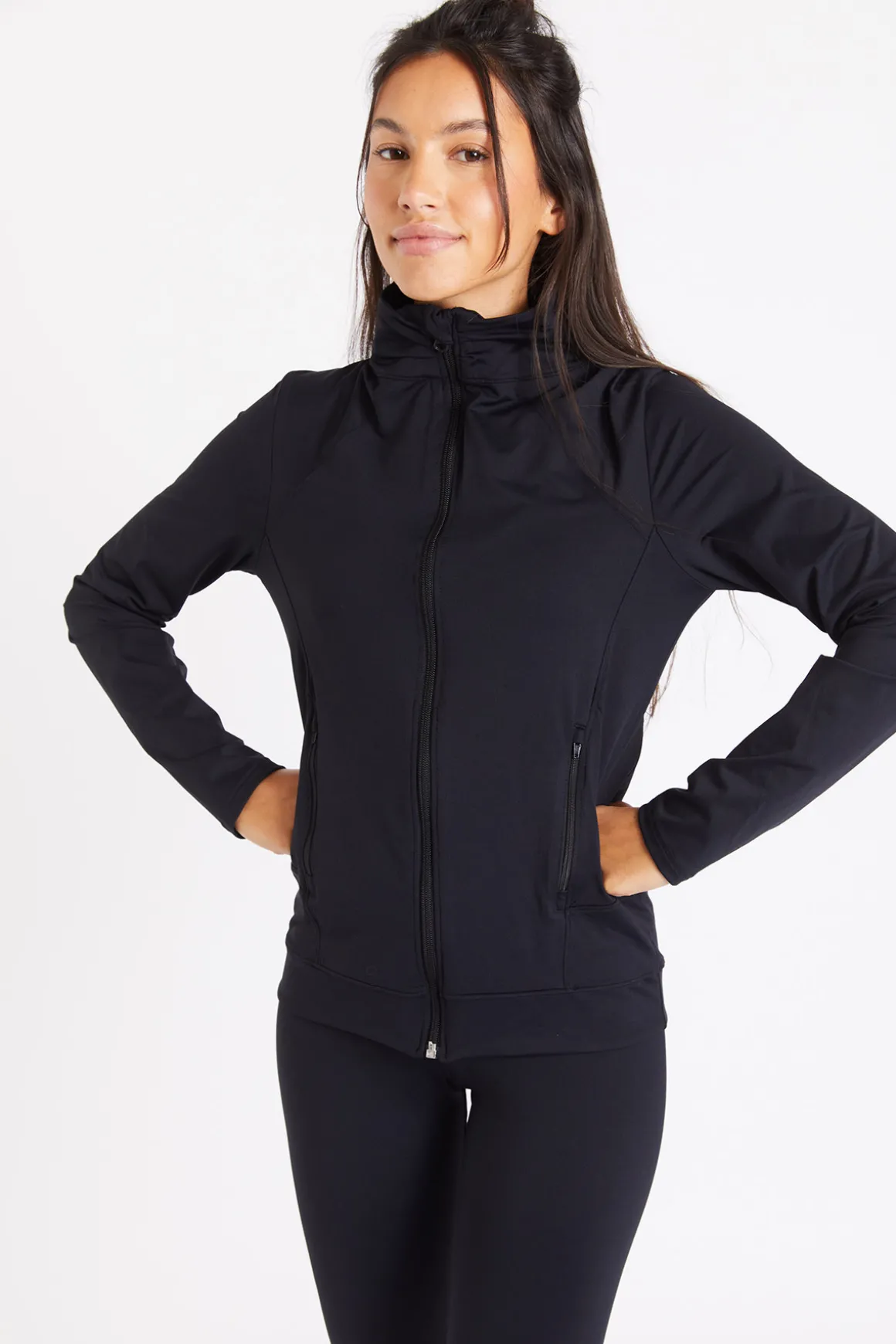 | Détails | • Veste de sport • Coloris noir • Coupe cintrée • Col montant • Fermeture éclair • Poches latérales avec fermeture éclair • Coutures ton sur ton • Matière respirante et UV protection |