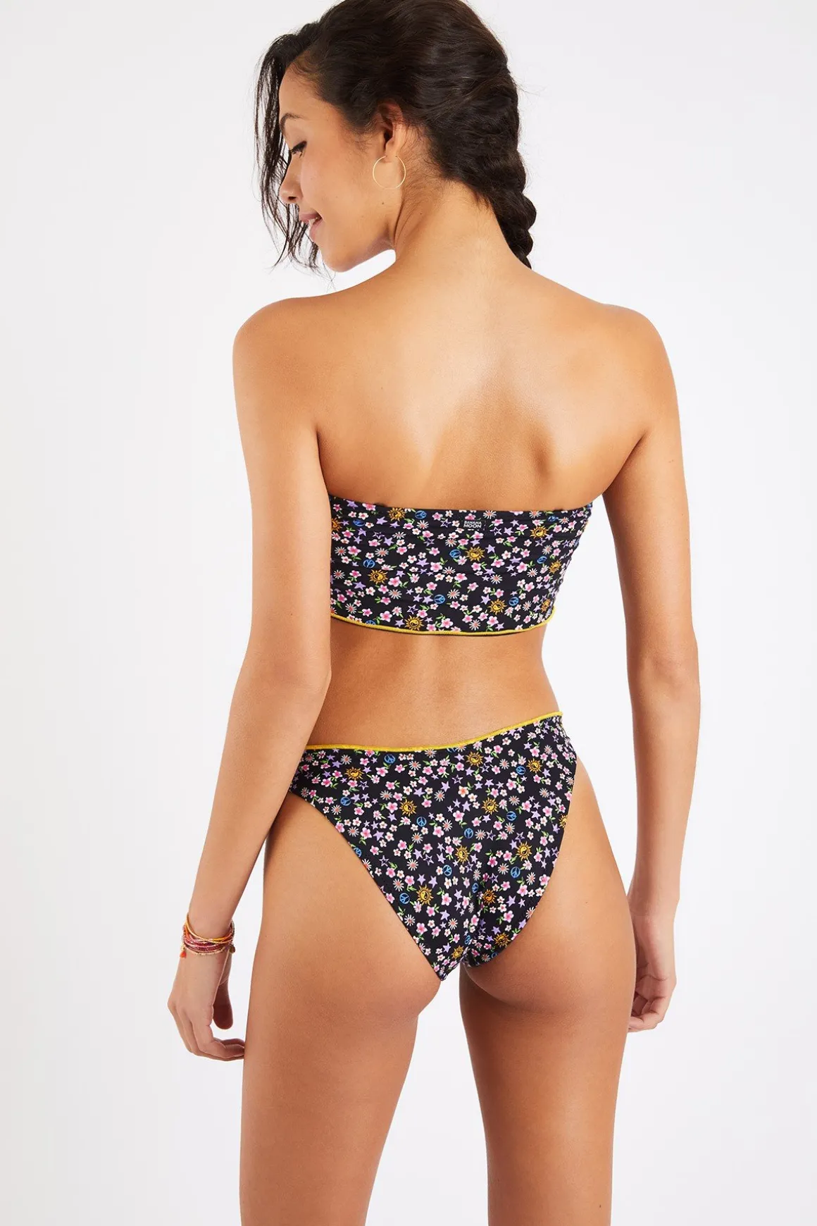 | Détails | • Haut de maillot bandeau • Coloris noir • Coutures jaunes • Bords volantés • Bonnet souple • Bretelles amovibles • Possibilité d’acheter des coques |