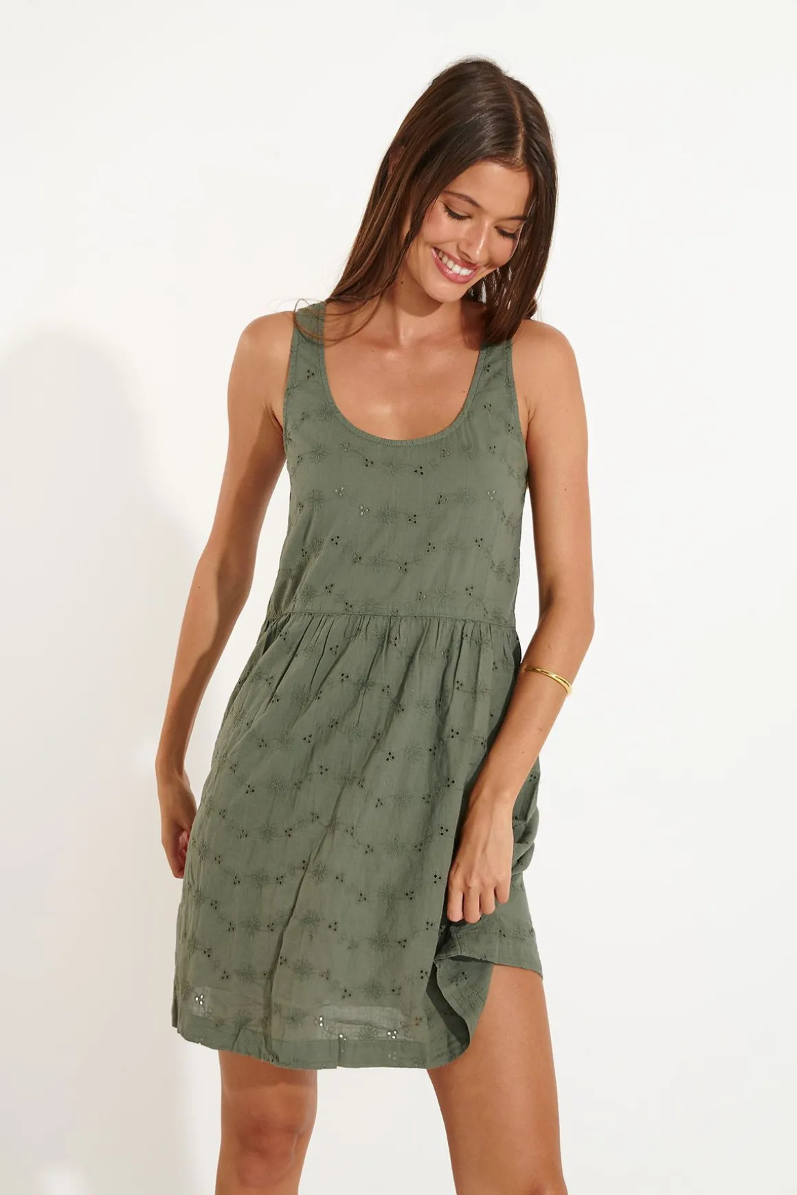 | Détails | · Robe courte · Coloris kaki · Col rond |