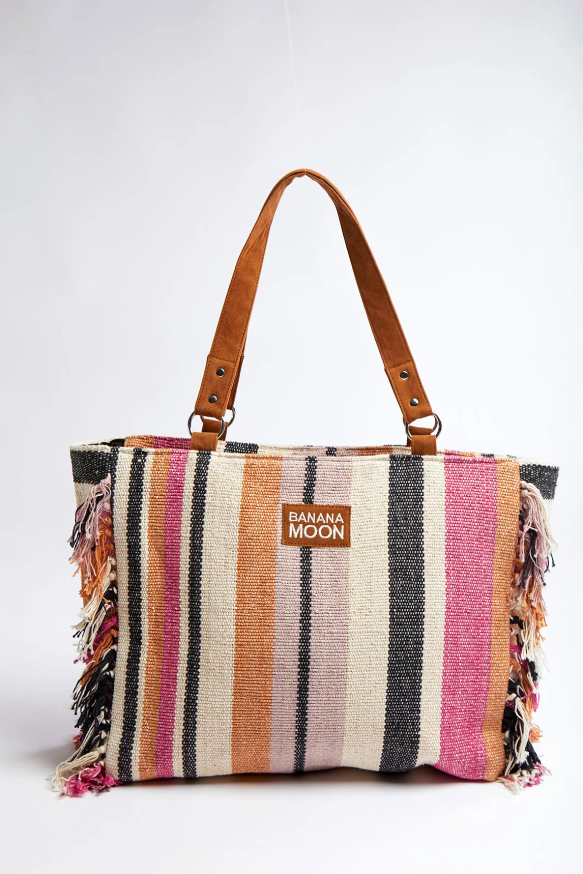 | Détails | • Sac cabas en toile • Coloris rose à rayures • Anses en suédine • Fermeture zippée • Doublure • Finition franges • Poches intérieures • Dimensions : 33,5 x 42 cm |