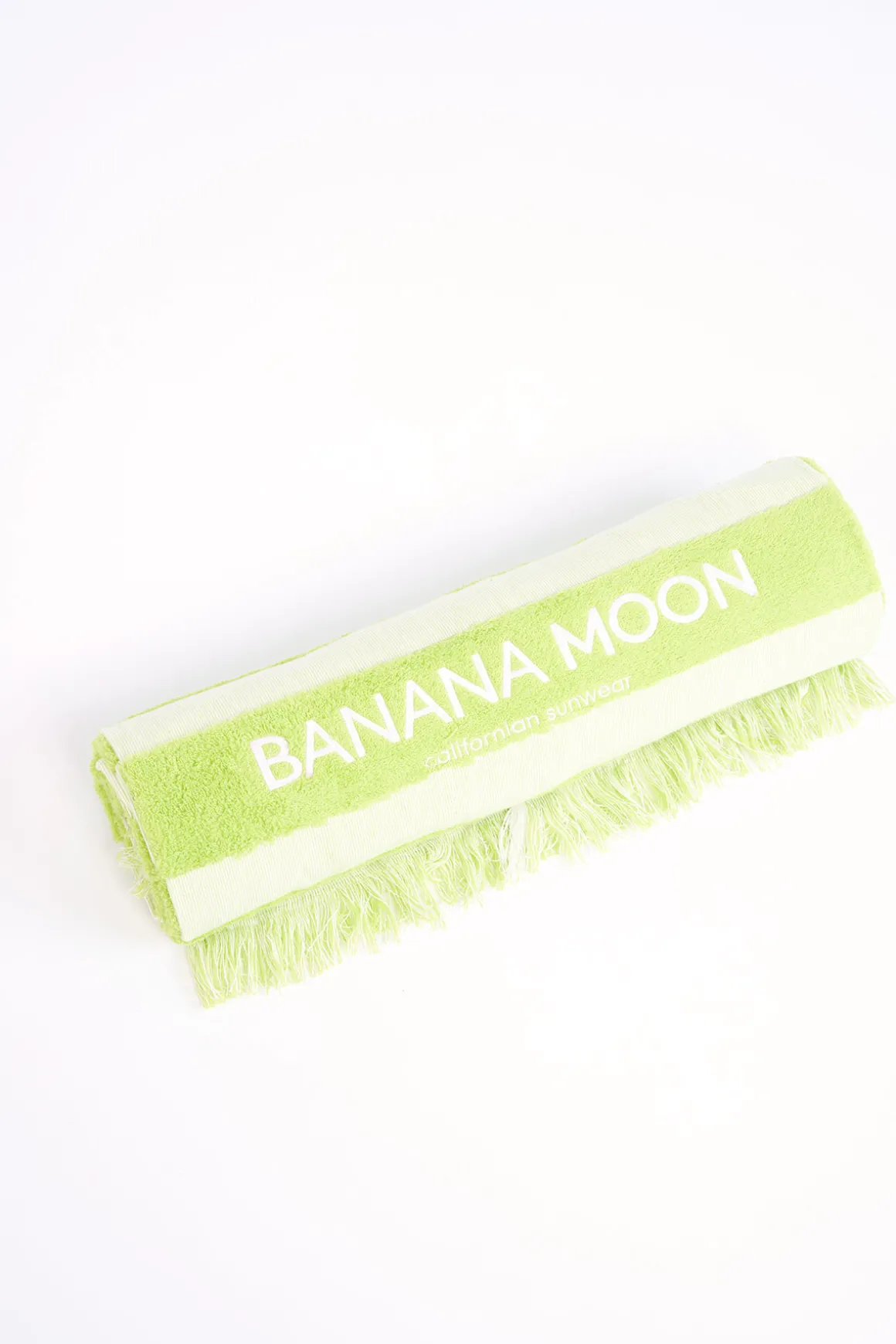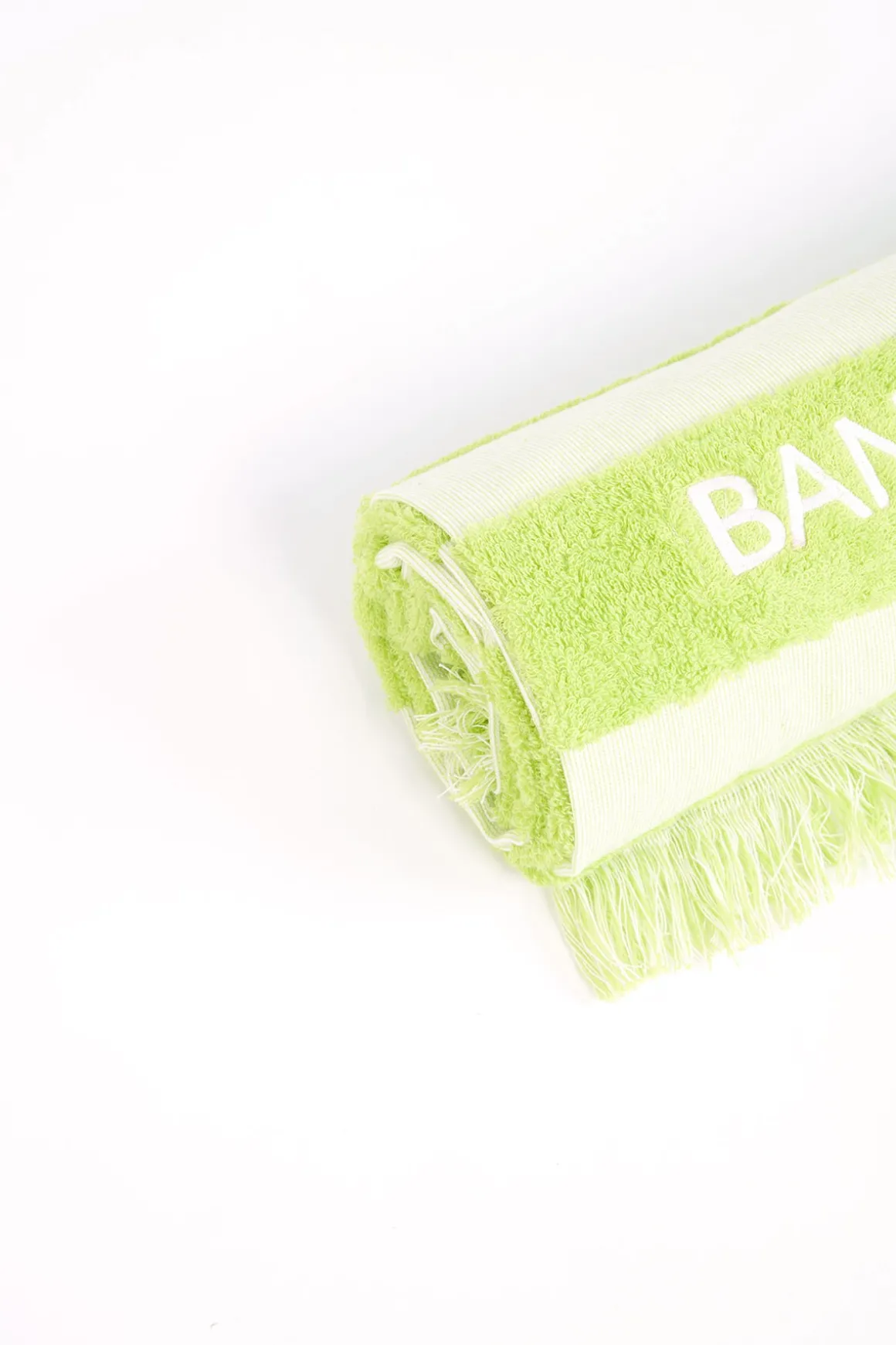 | Détails | • Serviette de plage à rayures coloris anis • Tissage « Banana Moon » • Finition franges • Qualité : 350 gr / m2 • Dimensions : 100 x 175 cm |